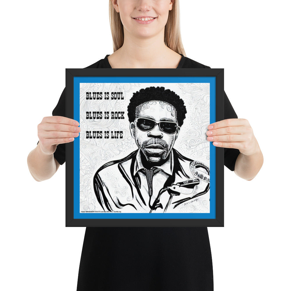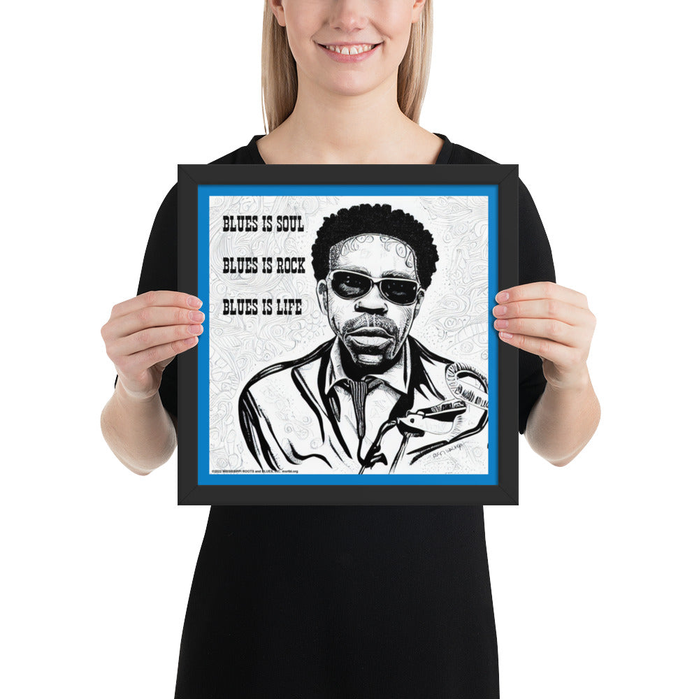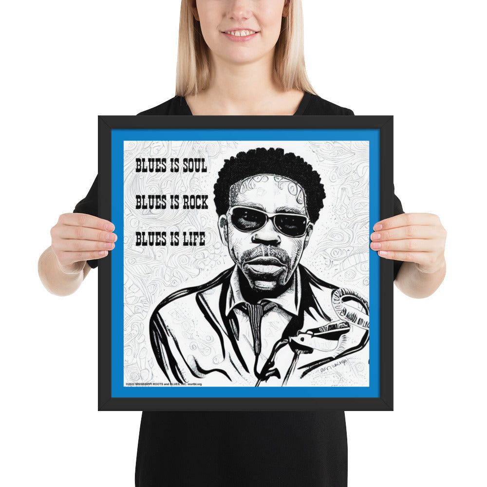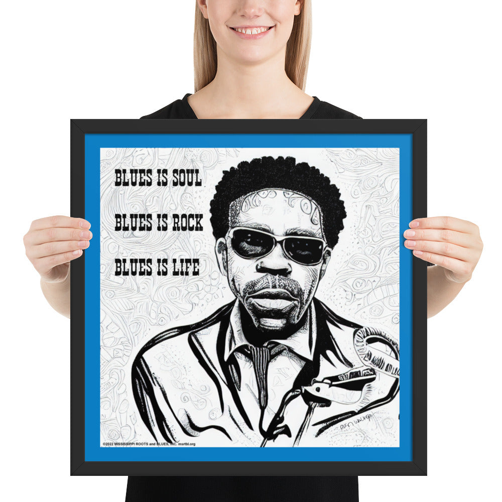 Can't get enough of the blues? Us either! Liven up your home with our latest custom blues framed art poster, Soul, Rock, Life! This vibrant and eye-catching poster is printed on high-quality paper with a partly glossy, partly matte finish. Plus, it's part of a series, so you can bundle them, group them, and love them! # vibrantdecor # bluesseries #MississippiRootsandBlues #ArtPoster