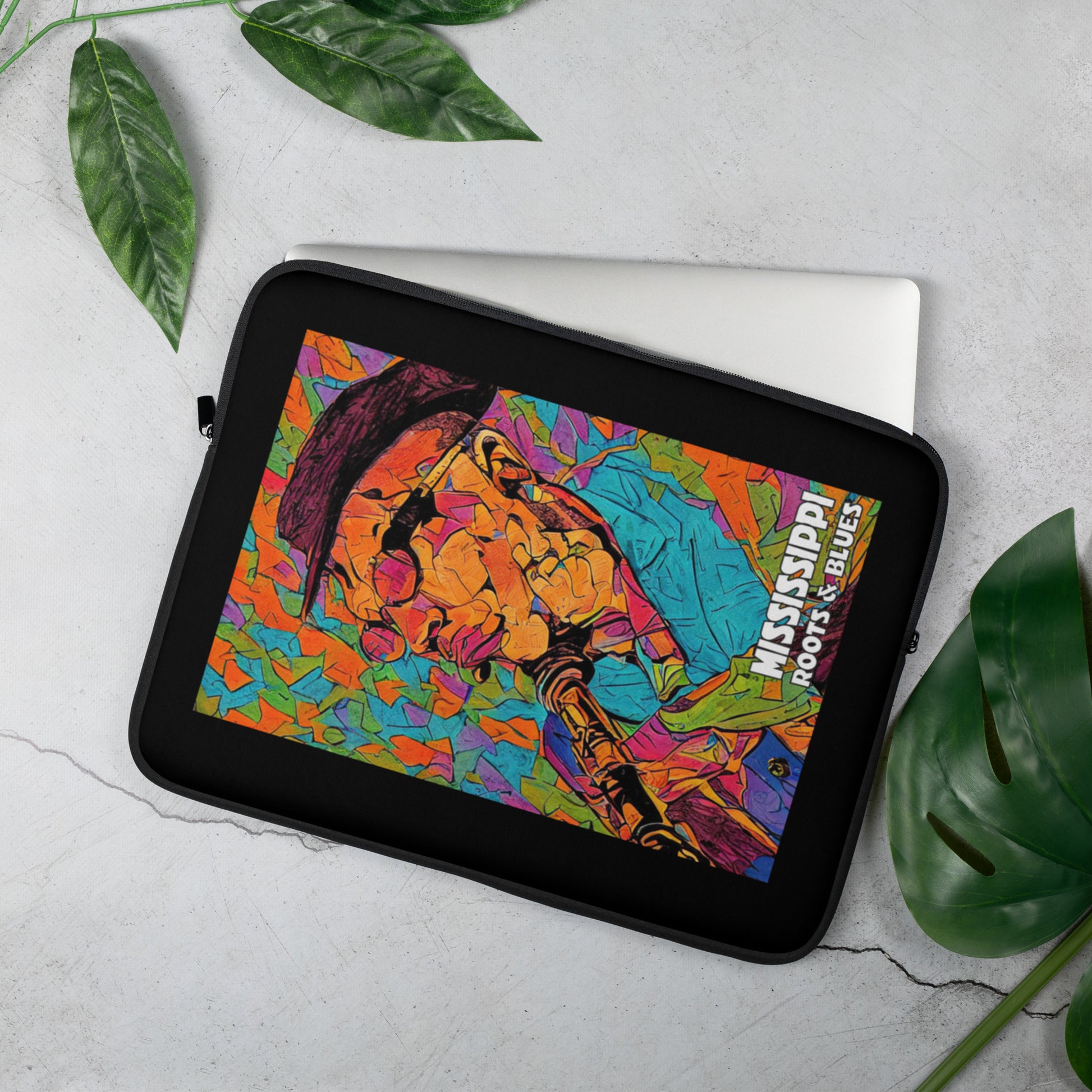 Looking for a stylish and protective way to keep your laptop safe? Look no further than our snug and lightweight laptop sleeve! This sleeve features an internal padded zipper and is fully lined with faux fur to prevent any scratch marks. Our custom blues art in mosaic style looks great and is also resistant to water, oil, and heat. Two sizes available. #laptopsleeve #customart