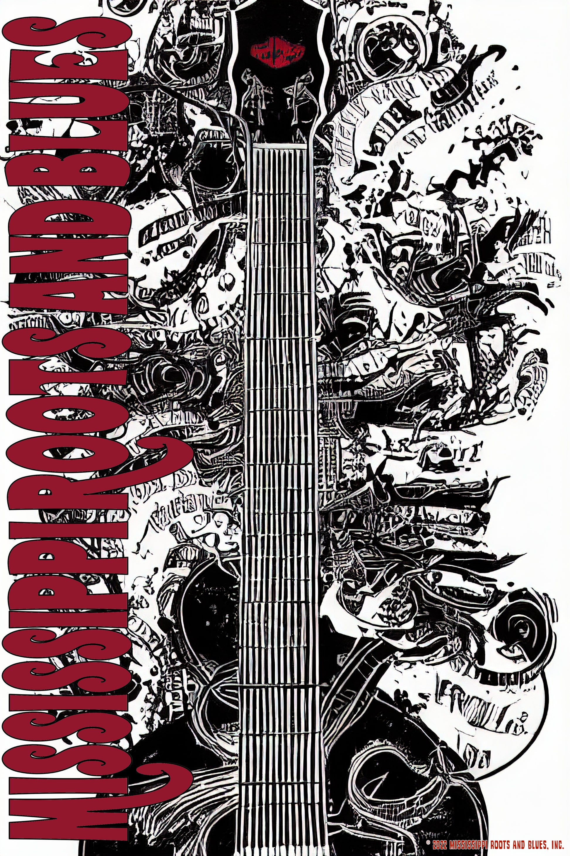 Step up your home decor game with this Mississippi Roots and Blues Guitar Wall Poster. This stylish poster is perfect for your studio, music room, or man cave. With its maroon lettering, this poster will add a pop of color to any space. So hang up this poster and show off your love of music.