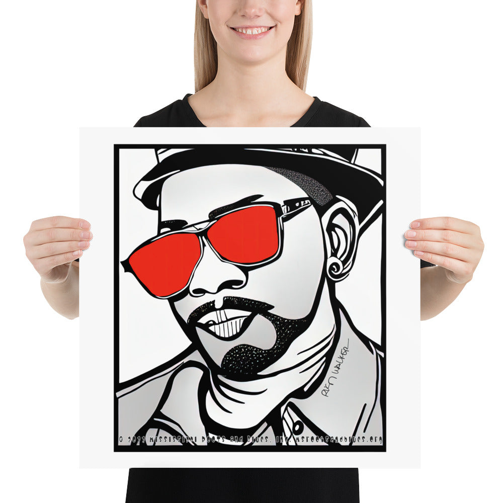 Looking for a fun and unique way to show your love of the blues? Check out our "Red Lens" custom blues art print! This vibrant and eye-catching poster is sure to add a touch of personality to any space - perfect for your next get-together with friends or family. It's another from our Blues Artist series and makes a great conversation starter. Pick one up today and show your support for the blues! #mississippirootsandblues #bluesart