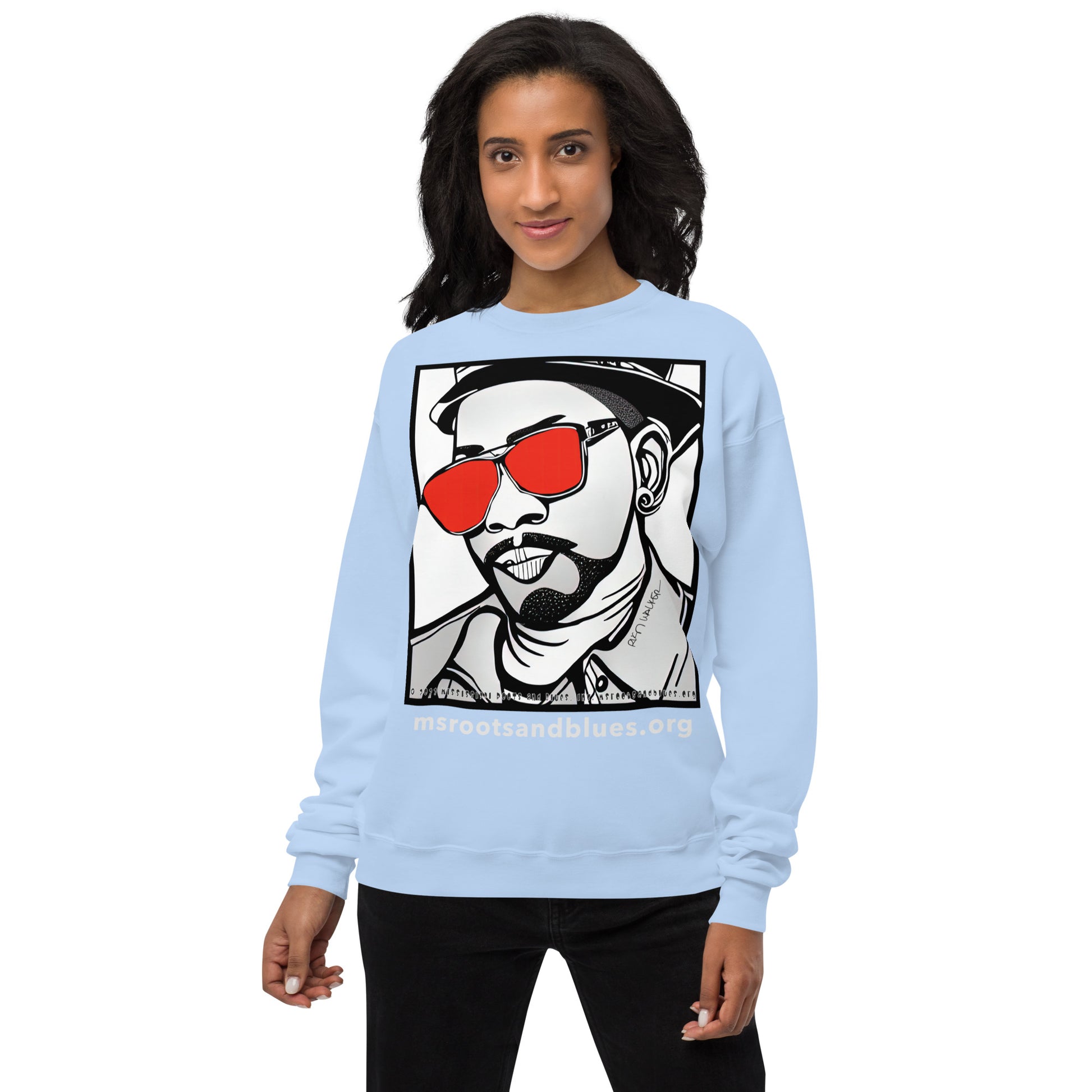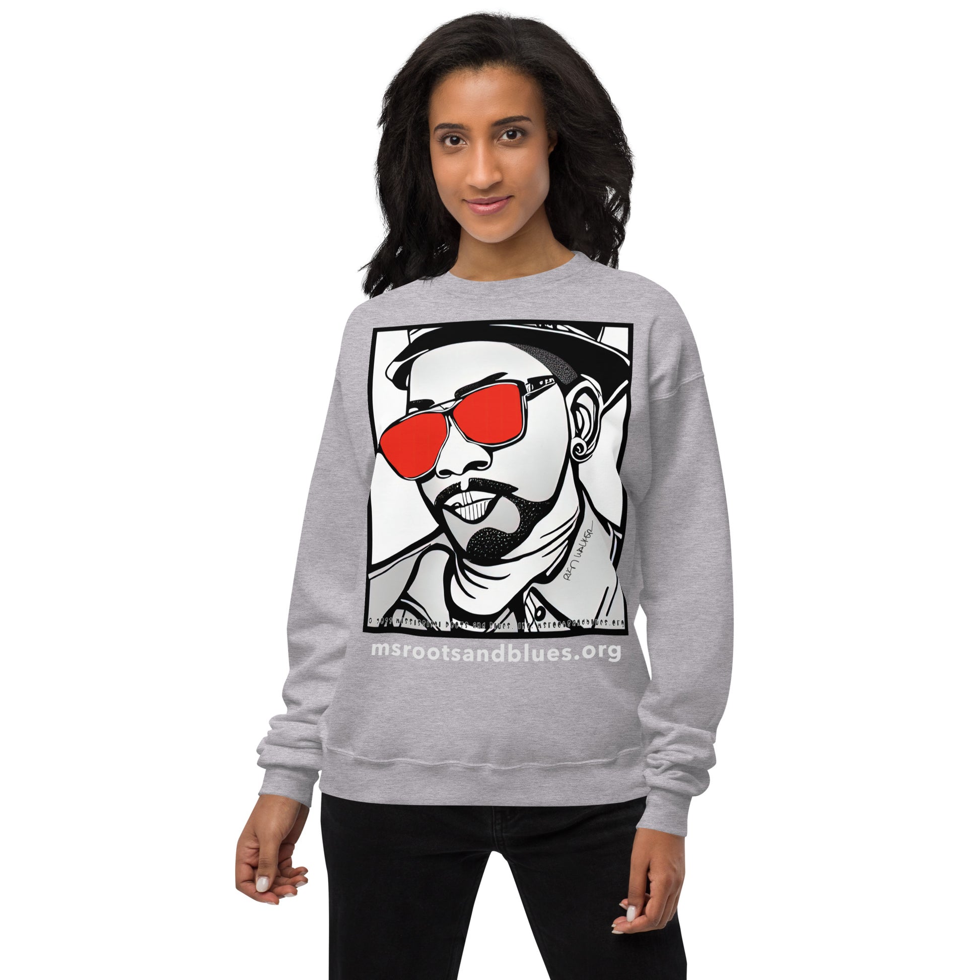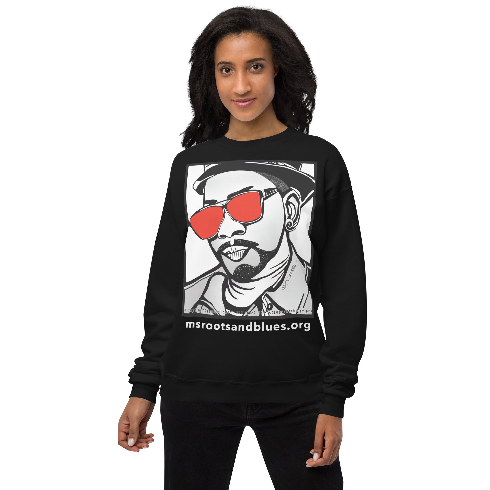 Cozy up this winter with this lightweight fleece sweatshirt from Mississippi Roots and Blues. (see info about weight below) Featuring custom artwork, "Red Lens," it's the perfect way to show your love of the blues. With sizes and colors to choose from, you'll be sure to find the perfect fit. And with up to 5% recycled polyester in components, you'll be taking a little step closer to a more earth-friendly way of life.