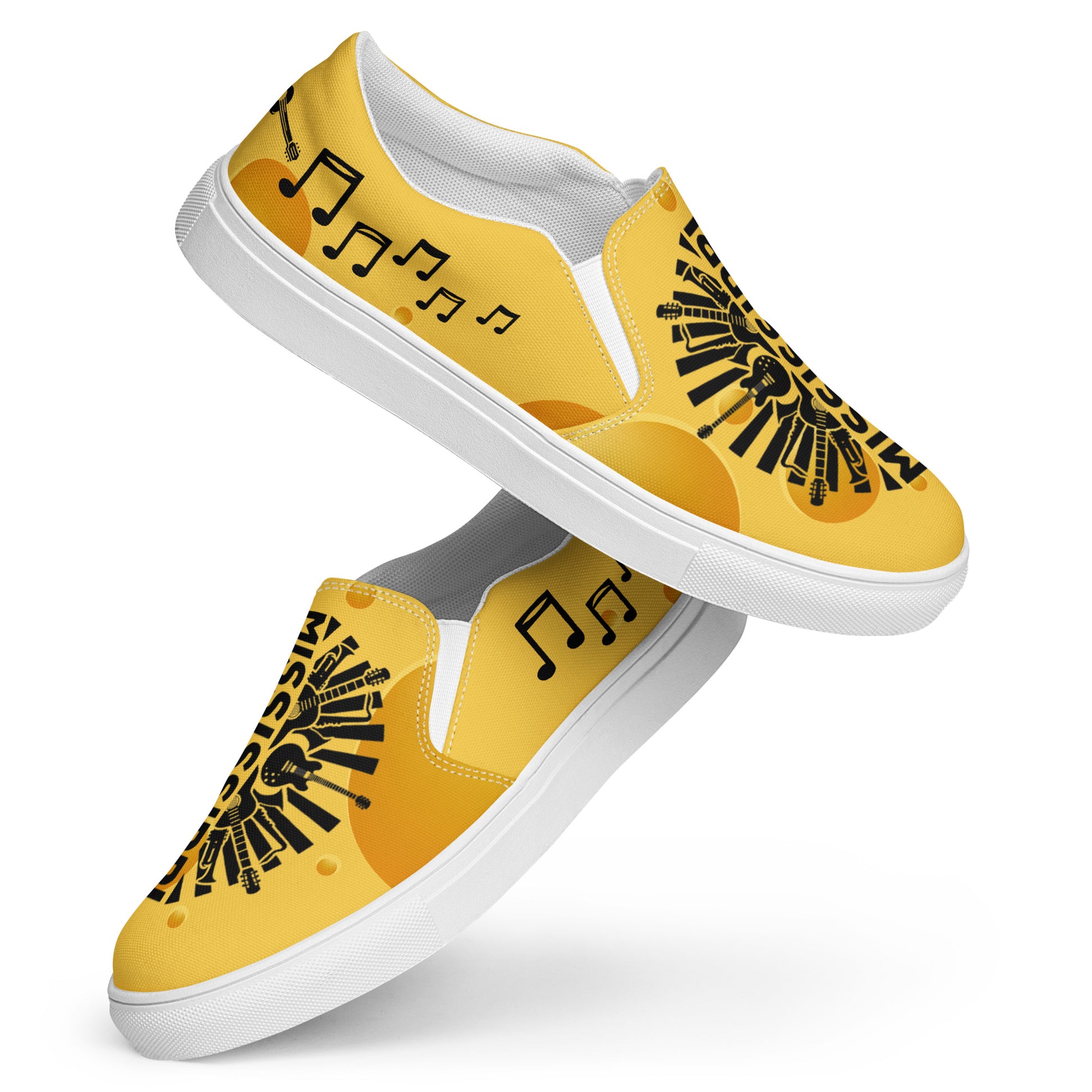 Step into the rhythm of music with our Men's Custom MS Blues Logo Sunny Day Slip-On Canvas Shoes. They're more than just a shoe - they're a melody for your feet.