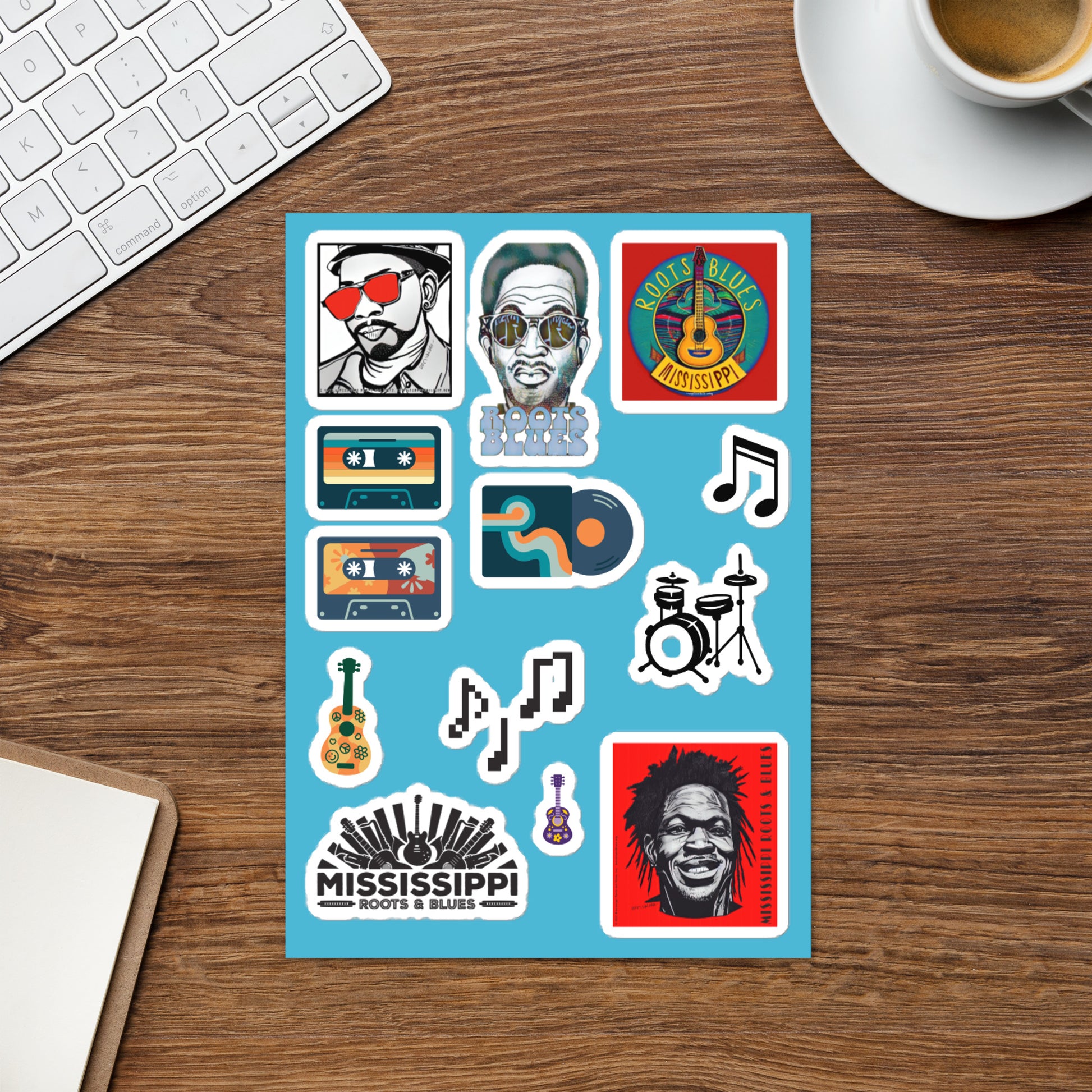 Give your belongings a musical makeover with these one-of-a-kind blues stickers! Whether you're accessorizing your favorite notebook or adding some personality to your phone case, these stickers are the perfect way to show the world your love for blues music. #MississippiRootsAndBlues #MusicalMakeover